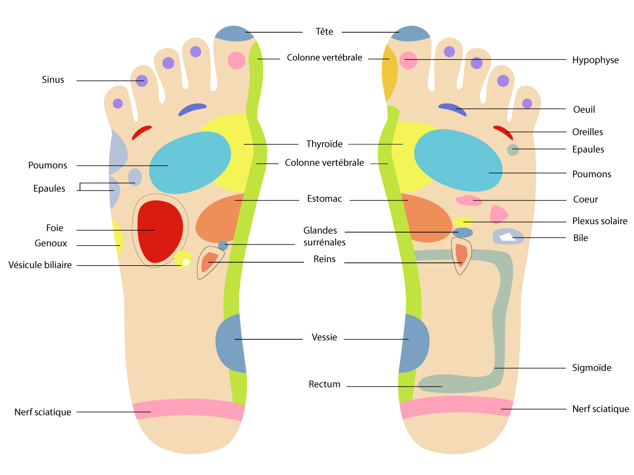 La réflexologie est basée sur le principe que le pied est la représentation du corps en miniature, et sur l’existence de zones réflexes correspondant chacune à un organe ou une partie du corps.
